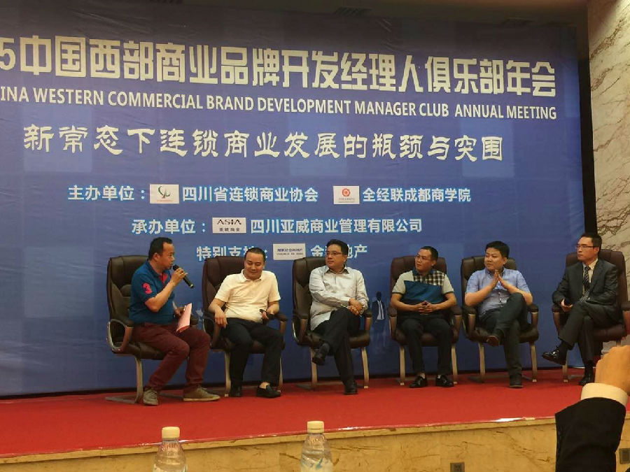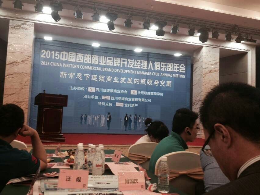 2015年4月29日下午,公司总经理汪彪先生(右三)应四川省连锁商业协会邀请参加连锁品牌商家拓展经理人年会活动,百位品牌开发拓展负责人应邀出席,通过项目信息发布及互动对话方式,共叙行业发展之前景,共享项目汇集之资源,共谋拓展市场之商机。