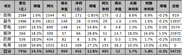 注:苏宁云商包含苏宁易购,合计数据予以剔除。